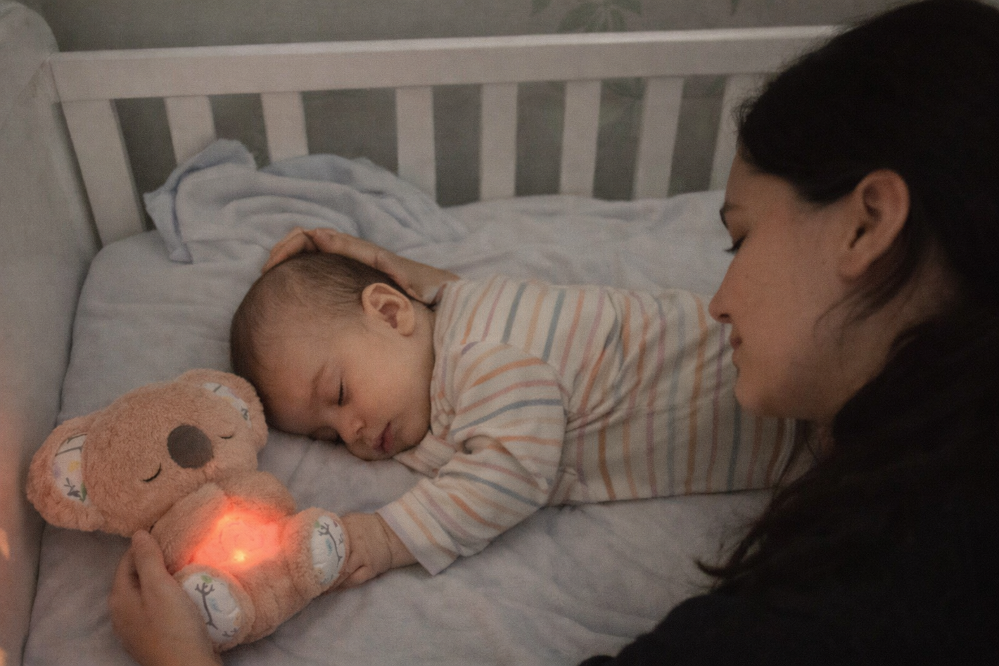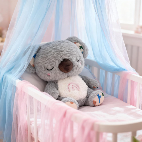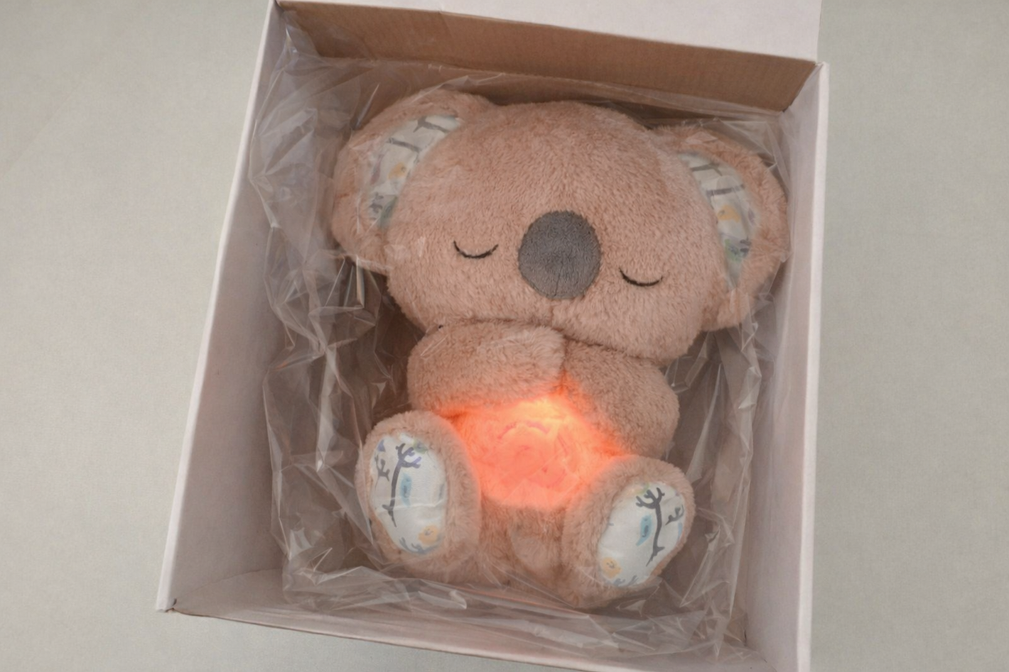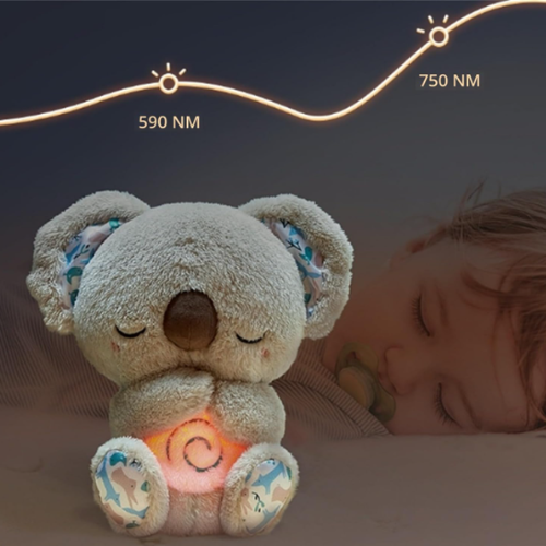 Al presionar la patita del koala, se activa una luz suave, sonidos tranquilos y un movimiento de respiración rítmico.